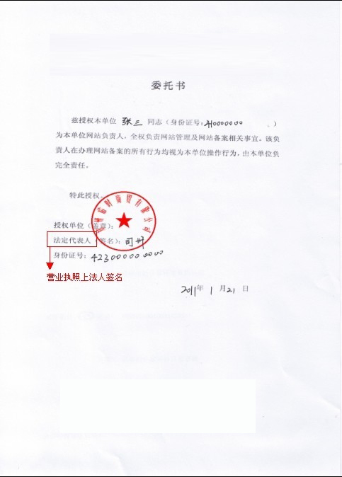 5.网站负责人如果不是法人需要委托书(一份)加盖公章