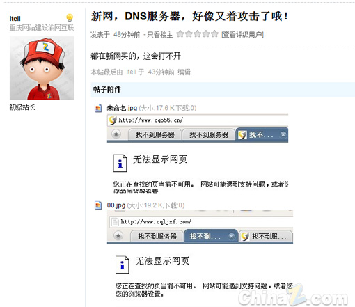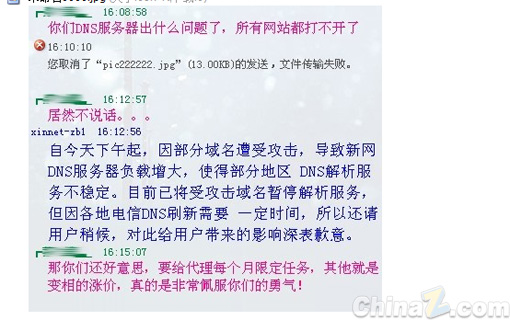有站长称其在新网的域名从14:00开始就出现访问不稳定的情况,新网DNS或又遭到攻击,从而导致故障。不过,新网方面未作正面回应。