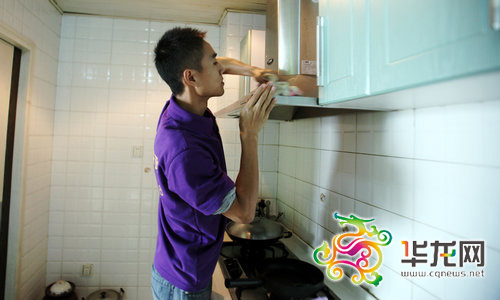 每个角落、每块油污,周续平都要仔细搽干净。 记者 胡旭欣 摄