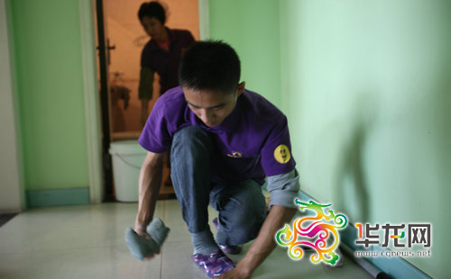 “半天才擦两扇窗,每天回家累得倒头就睡。”工作两个月后,23岁前从未做过家务的周续平,因拧抹布而磨出一手老茧。